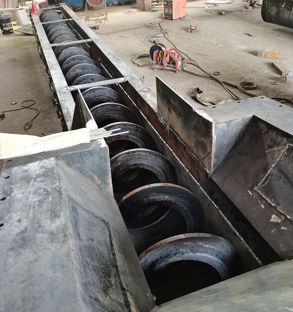 歐松WLS無軸螺旋輸送機產(chǎn)品主要由驅(qū)動裝置、頭部裝配、機殼、無軸螺旋體、槽體襯板、進料口、出料口、機蓋(需要時)、底座等組成。 1、驅(qū)動裝置:采用擺線針輪輪減速機或軸裝式硬齒面齒輪減速機,設計時應盡可能將驅(qū)動裝置設在出料口端,使螺旋體在運轉(zhuǎn)時處在受拉狀態(tài)。 2、頭部裝配有推力軸承,可承受輸送物料時產(chǎn)生的軸向力。 3、機殼:機殼為U型或O 型,上部加防雨型機蓋,材質(zhì)有不銹鋼或碳鋼或玻璃鋼。 4、無軸螺旋體:材質(zhì)為不銹鋼或碳鋼。 5、槽體襯板:材質(zhì)為耐磨的塑料板或橡膠板或鑄石板等。 6、進、出料口:有方形和圓形兩種,一般進、出料口形式由用戶決定。