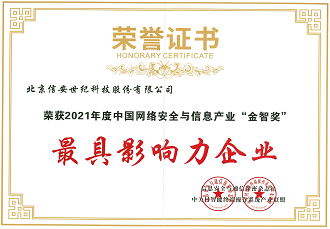 2021年中國網絡安全與信息產業最具影響力企業獎